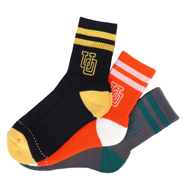 UNIVERSAL OVERALL【25-27cm】メンズ 3Pソックス カレッジバッグビッグロゴ/靴下/3足組/男性用