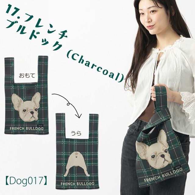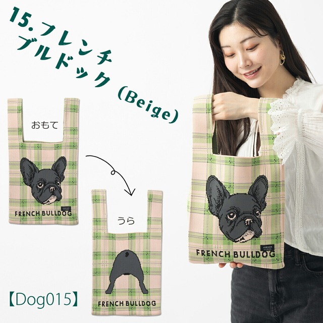 Jubilee ニットトートバッグ 犬 ドッグ おしり チェック デザイン マルシェバッグ フレンチブルドッグ