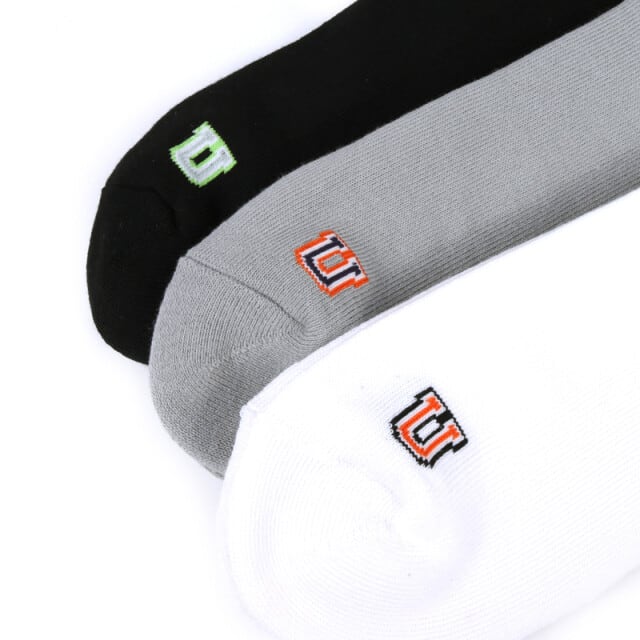 気分で選べるカラーパターン3足がセットになった、人気のロゴソックスセット。リブ部分のロゴマークがポイントのシンプルなデザインで幅広いコーデに合わせて使えます。しっかりとした肉厚な素材で伸縮性も良くソフトな肌触りで足にしっかりフィットしてくれます。 内側の底部分はパイル仕様でクッション性も兼ね備えています。