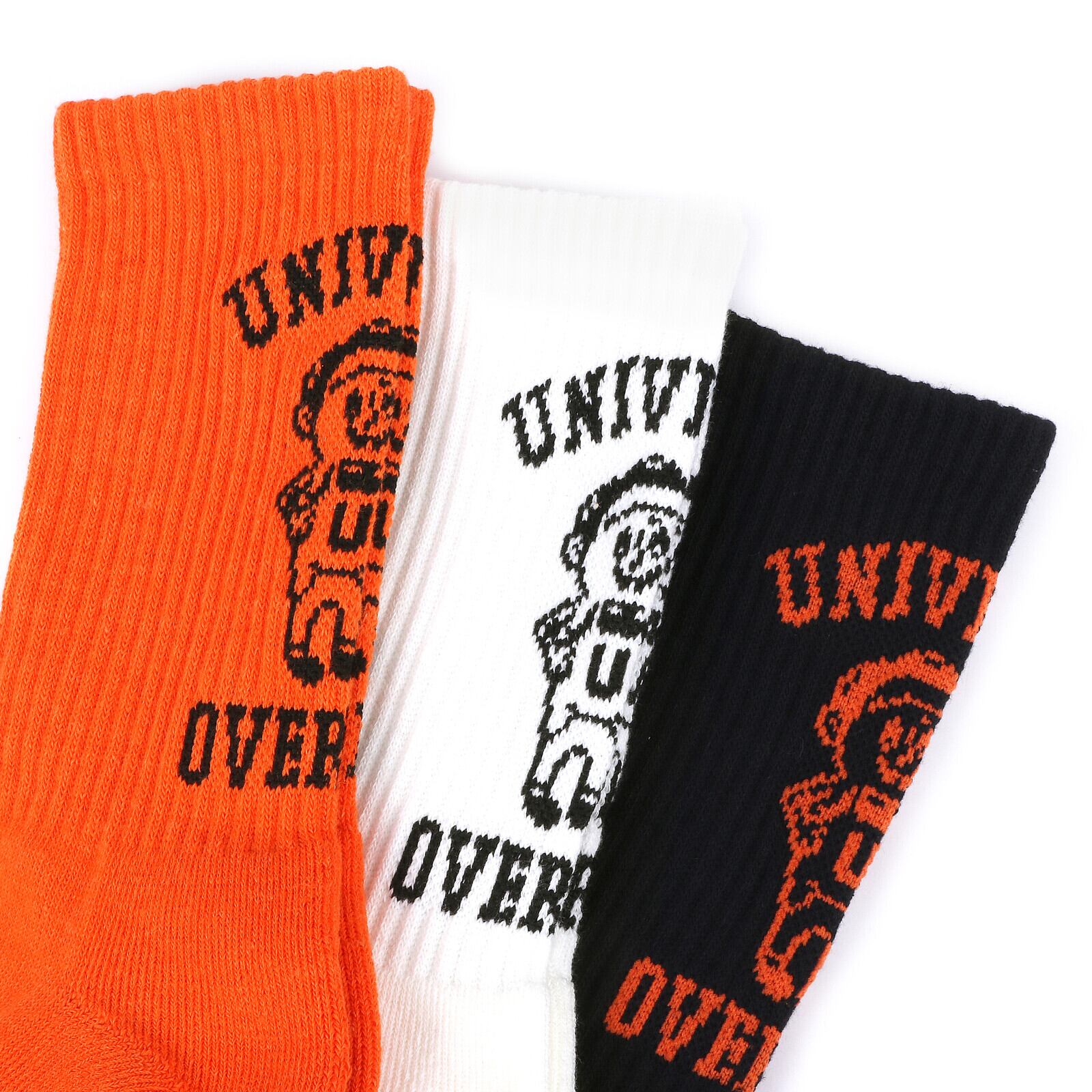 気分で選べるカラーパターン3足がセットになった、人気のロゴソックスセット。かかと部分に可愛らしいブランドキャラクターがデザインされており、コーディネートのアクセントになります。しっかりとした肉厚な素材で伸縮性も良くソフトな肌触りで足にしっかりフィットしてくれます。 内側の底部分はパイル仕様でクッション性も兼ね備えています。【UNIVERSAL OVERALL】1924年に創業したアメリカ、シカゴのワークウェアブランド、ユニバーサルオーバーオール。